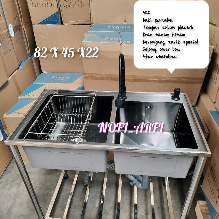 MURAH BAK CUCI PIRING PORTABLE/KITCHEN SINK 8245/WASTAFEL SUS 304 - kaki+body