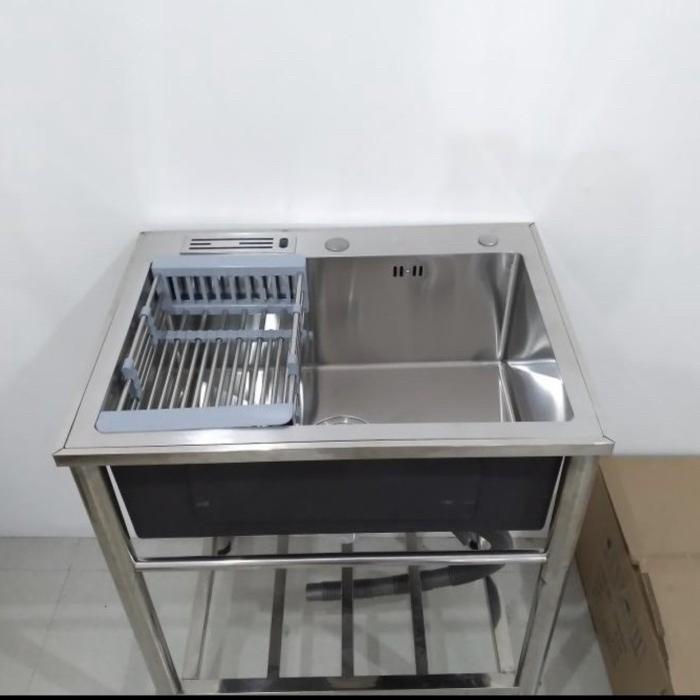 Sink table bak cuci piring meja portable 1 lubang 6045 stainless Kran Set - Sink + kaki