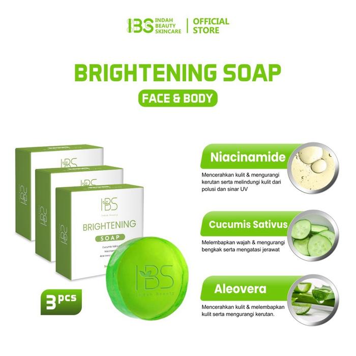 IBS Brightening Soap 3pcs Hijau Sabun Muka Membersihkan Mencerahkan Memutihkan Perawatan Flek Hitam