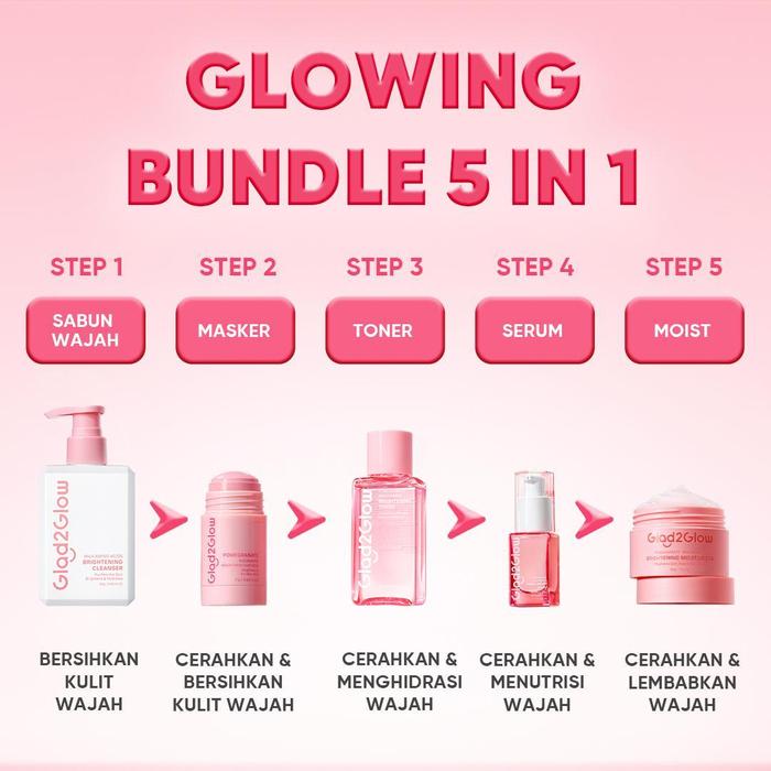 New Glad2Glow Glowing bundle all in 1 - 2/3/4/5 PCS Skincare Paket-Brightening toner+Brightening