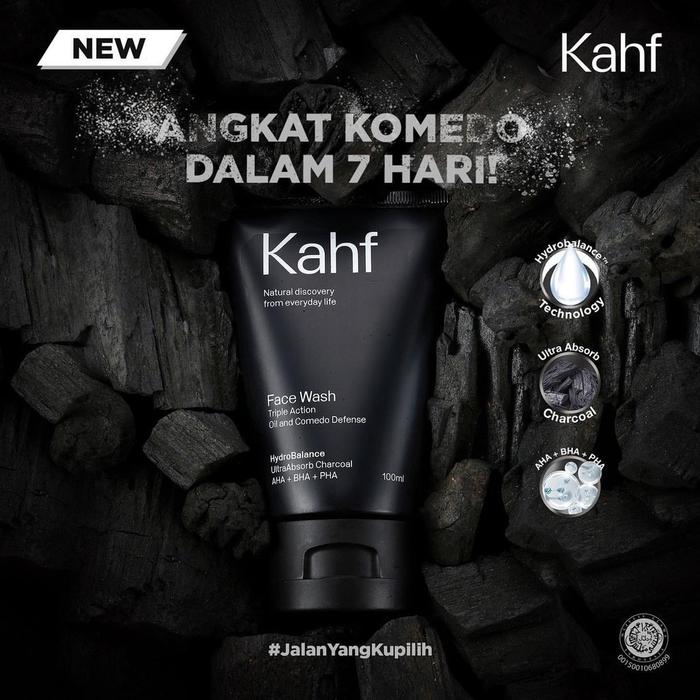 KAHF Face Wash 100ml Sabun Wajah Pria Triple Action Oil Comedo Acne Gentle Exfoliating Scrub Hitam,