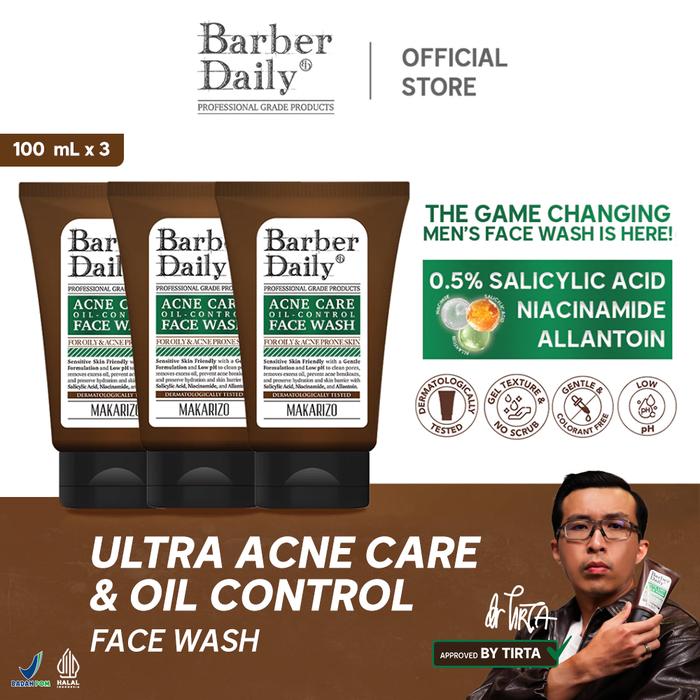 READY STOCK Triple Pack Ultimate Clenser Barber Daily Acne Care & Oil Control Face Wash 100mL x 3