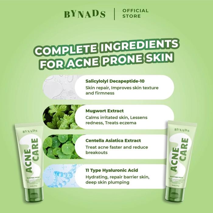 Bynads Acne Care Sleeping Mask with Salicyloyl Decapeptide-10 3in1 SleepingMask Moisturizer Wash Off