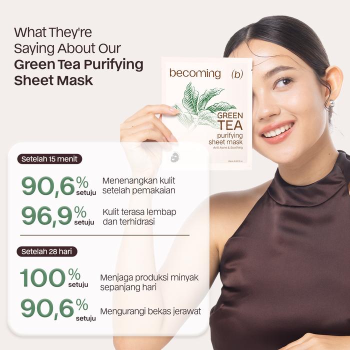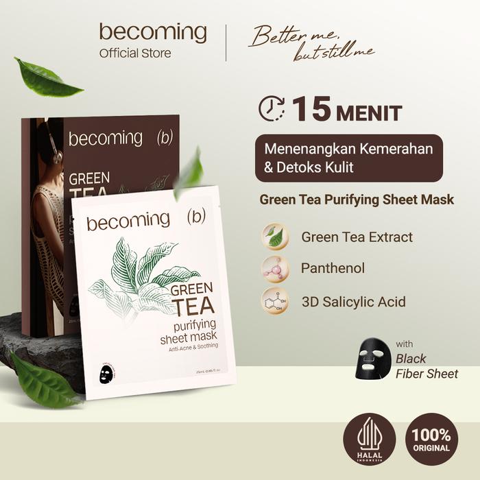 becoming Green Tea Purifying Sheet Mask 25ml - Masker Wajah Anti Jerawat & Menenangkan Kulit