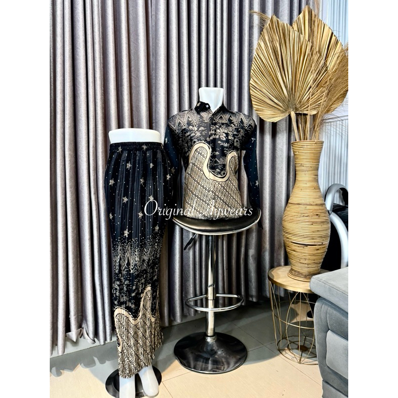 Aywears / batik Couple Arka hitam / Kemeja Batik seragaman / Kemeja batik lengan panjang Dan Rok prisket/ kemeja batik couple keluarga
