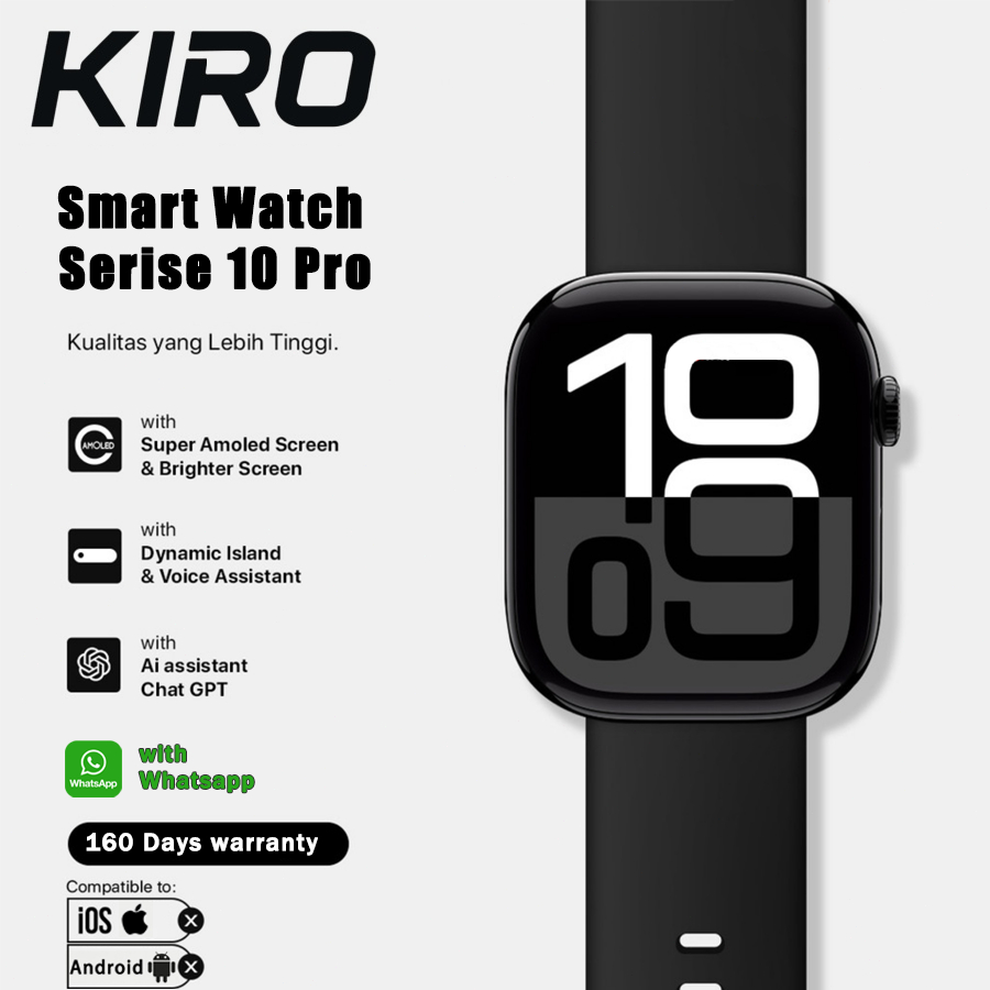 KIRO iPhone smart watch Support Whatsapp Reply S11 Pro AI Smartwatch dengan Layar OLED 2.08" dan Baterai 480 Jam Tahan A