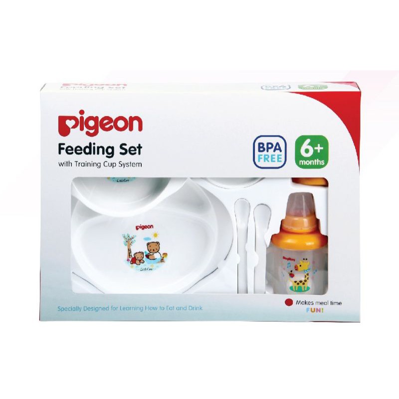 Pigeon Feeding Set With Training Cup System 6m+ Set Peralatan Makan Bayi Set Tempat Makan Bayi Usia 6 Bulan Gift Box Kad