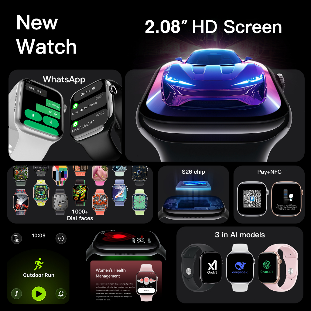 KIRO iPhone Smart Watch-support Whatsapp Reply-Watch Series 11 Smartwatch OLED 2.1" Display for sport Smartwatch-Bluetoo