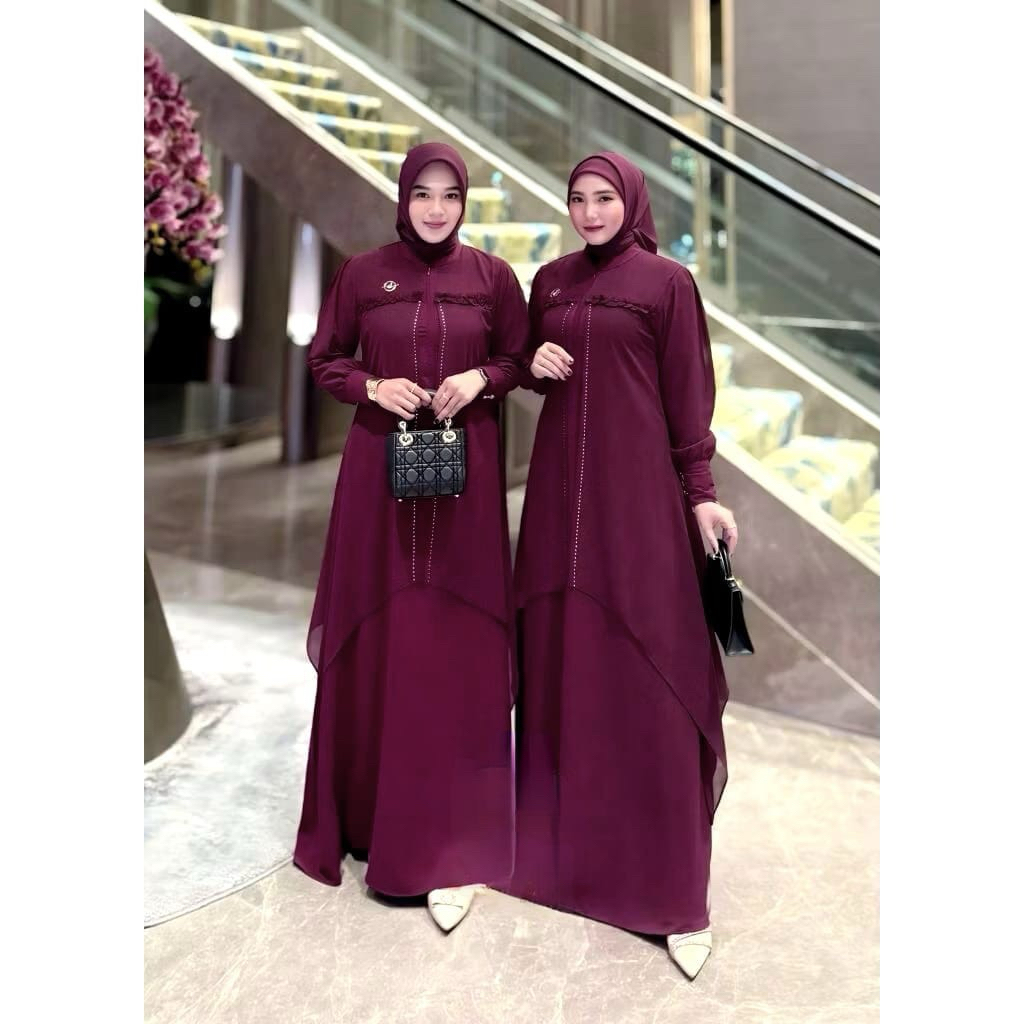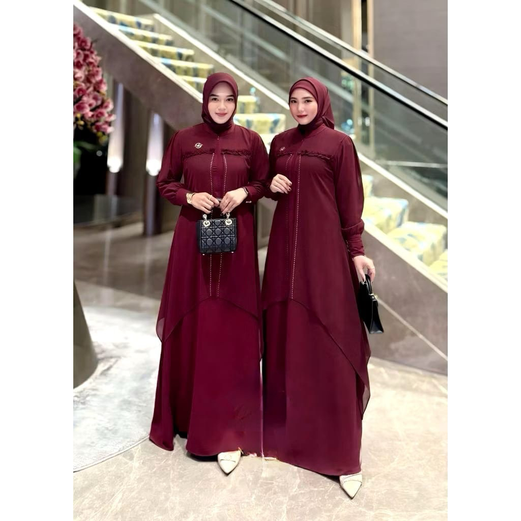 Gamis Pesta Mahogany Dress Lebaran 2026 Dress Gamis Simple Mewah Elegant Bahan Ceruty Premium