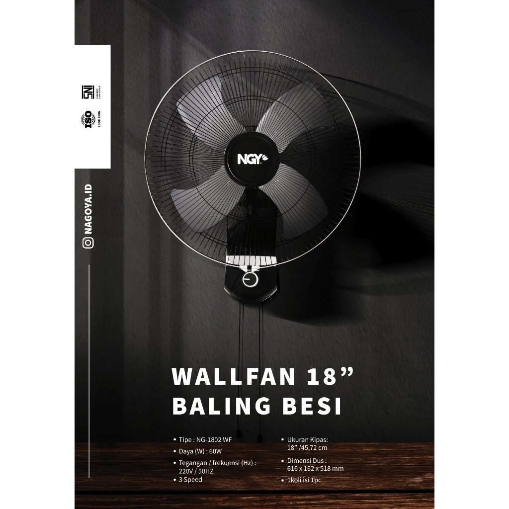 Nagoya Kipas Angin Dinding Besi 18 Inchi Industrial Wall Fan 18 Nagoya Ng-1802Wf Ng 1802 Wf