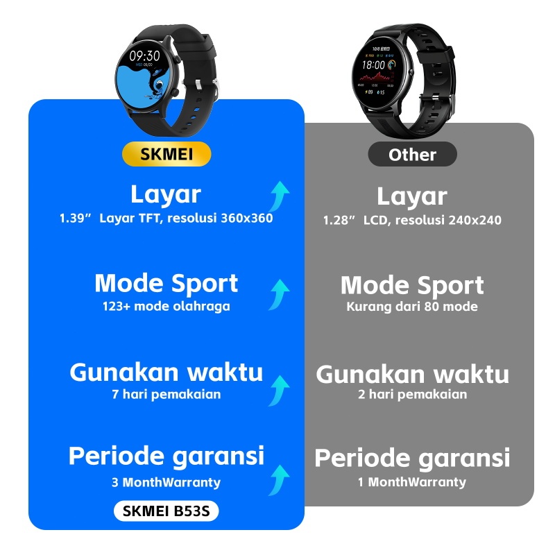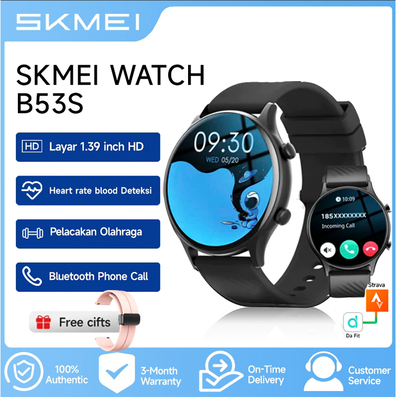 skmei b53s smart watch Jam Tangan Pria Wanita 1,39 Inci Sport Tracker Data tidur/pengukuran detak jantung Bluetooth Phon