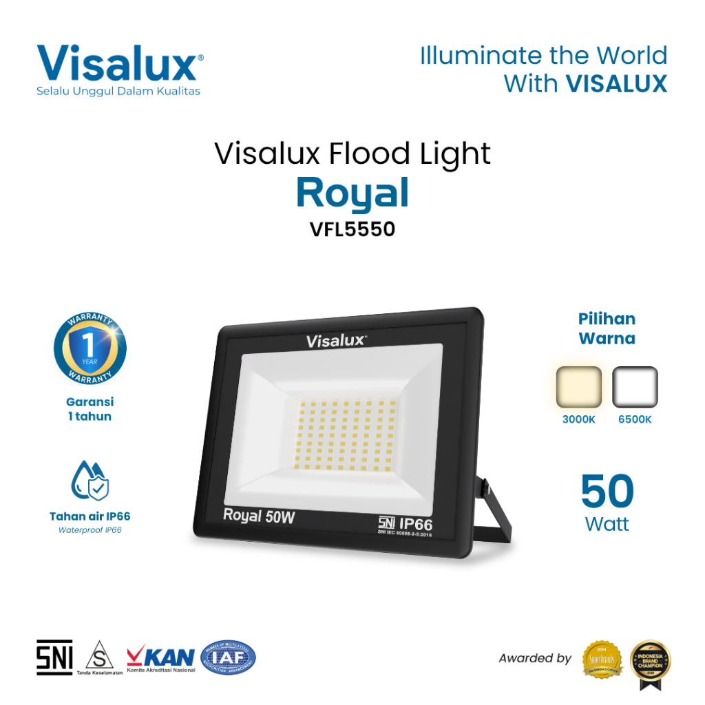 Visalux Lampu Sorot Led Flood Light Royal 50W - Lampu Tembak Cahaya Putih / Kuning (Ryl-Vfl5550)