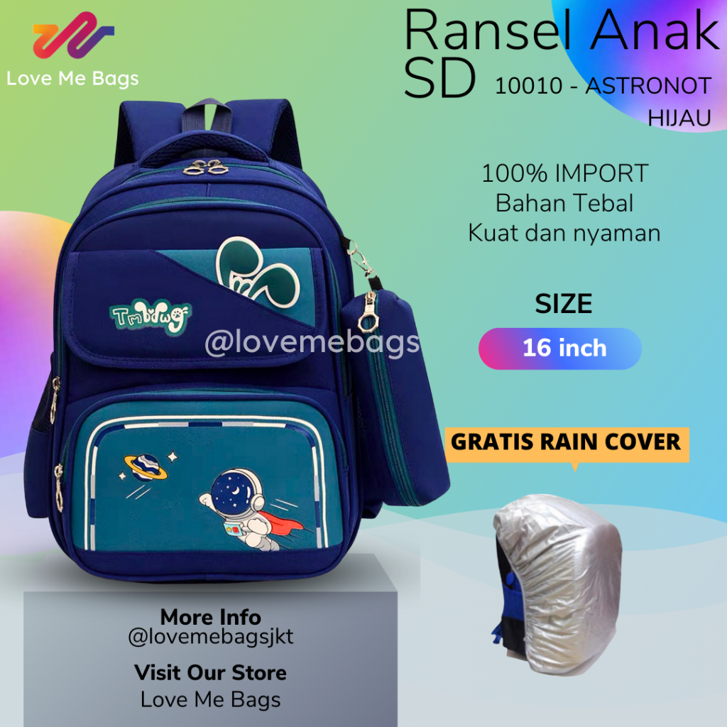 Lmb Tas Sekolah Anak Laki Laki Sd Astronot Ukuran 16In Bahan Nilon Premium Tebal Gratis Kotak Pensil