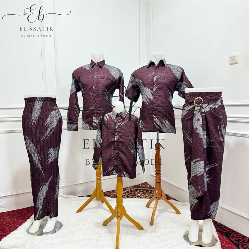 elsbatik doby batik couple keluarga burgundy coklat mahogany cople ayah ibu anak laki laki premium