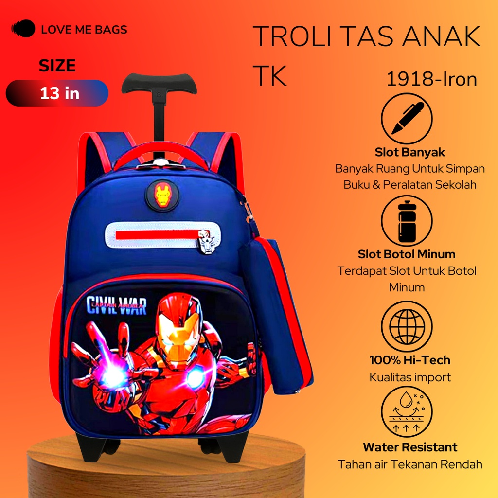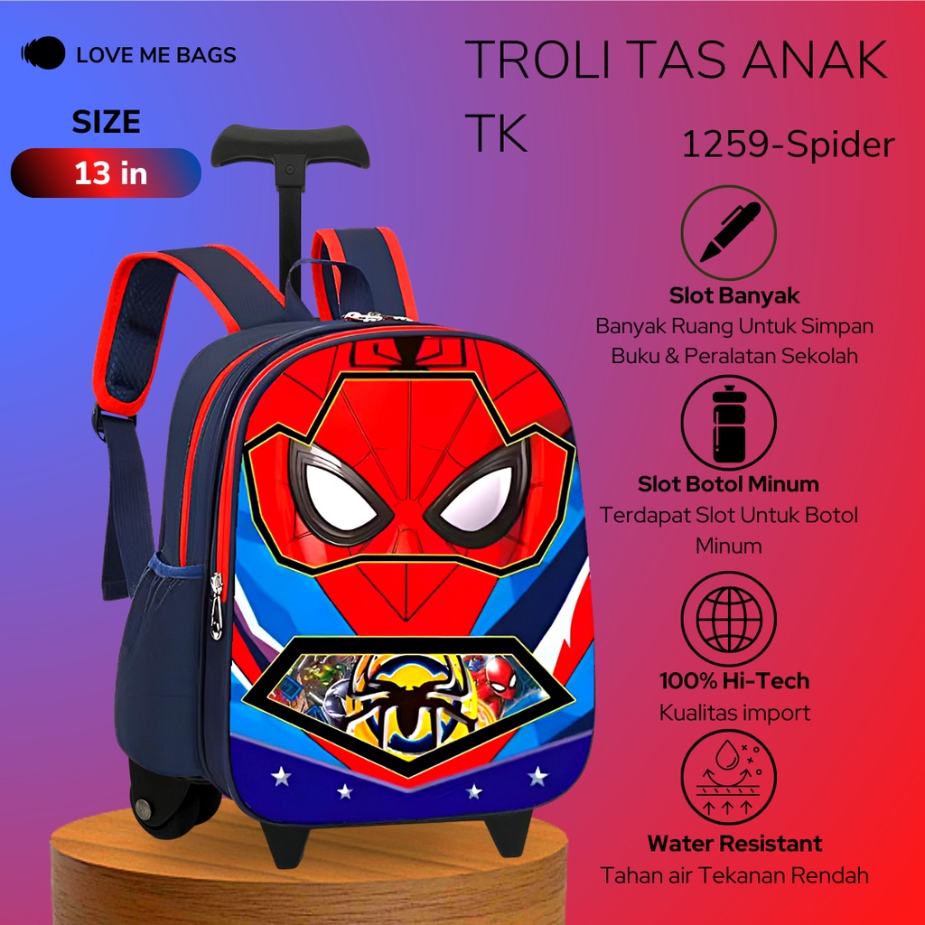 Lmb Tas Troli Anak Laki Laki Tk Import Gambar Karakter Superhero Bagian Depan Timbul 6D Bahan Nilon Kualitas Premium