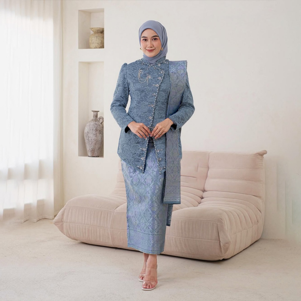 Batik Couple Termurah - Kebaya Couple Ayu Janggan Brokat Tulle Payet Setelan Rok Motif Songket Wisuda Kondangan Lamaran Jeng Yah