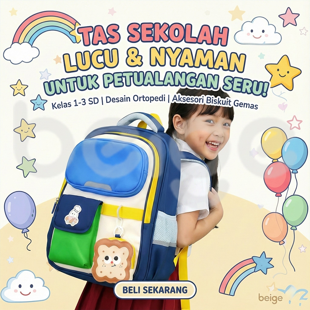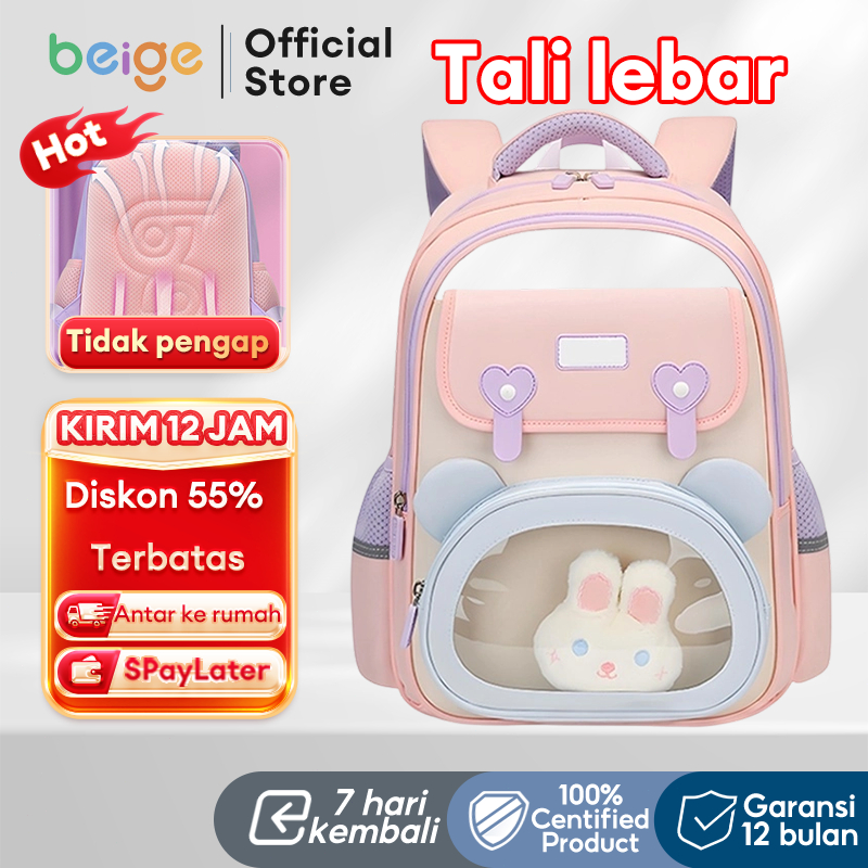Beige Tas Ransel Anak Tk Sd, Unisex Tas Sekolah Anak Laki-Laki & Perempuan, Tas Ransel Sekolah Lucu
