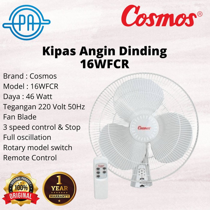 Kipas Angin Dinding Wall Fan Remote 16" Cosmos 16Wfgr 16 Wfgr Full Hitam / 16Wfcr Abu Abu