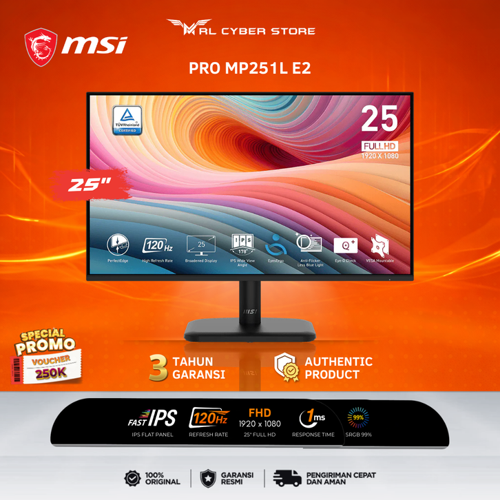 MONITOR MSI PRO MP251L E2 25" IPS FHD 120Hz 1ms Adaptive Sync HDMI VGA MONITOR PC GAMING 24 INCH 120HZ