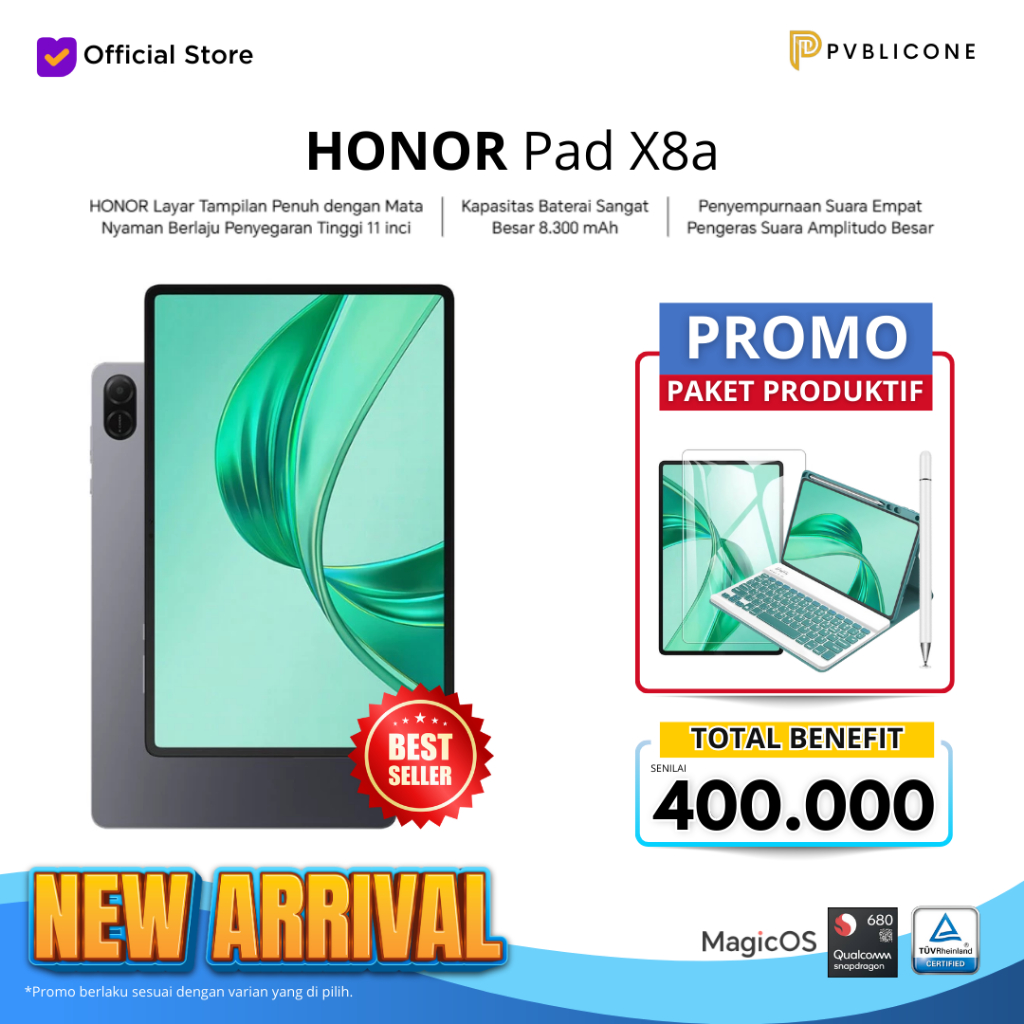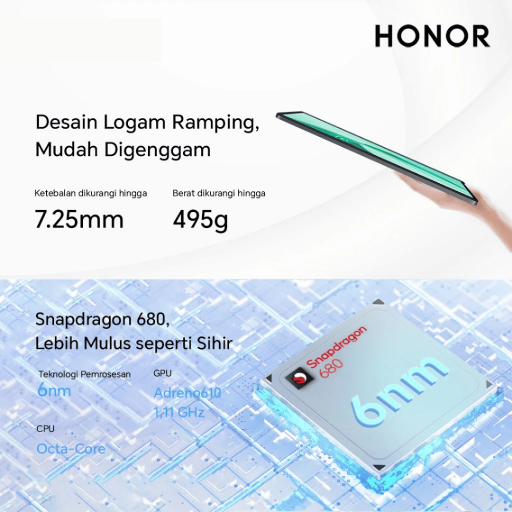 HONOR Pad X8A Tablet Layar 11 inch RAM 4GB + 4GB ROM 128GB Kamera Depan 5MP Belakang 5MP Batrai 8300mAh 4 Speaker
