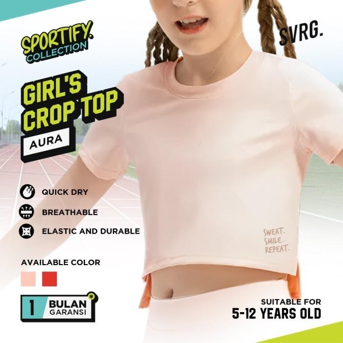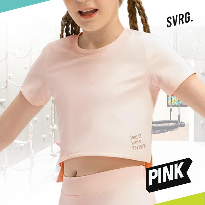 Aura Crop Top for Girls - Atasan Olahraga Anak Perempuan - Merah Muda, 120