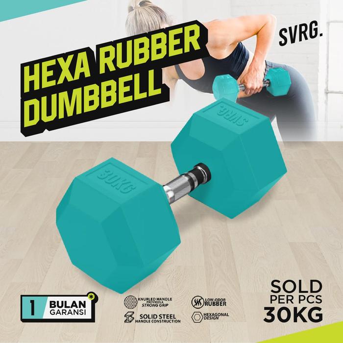 SVRG. Hexagonal Dumbbell Turquoise - Rubber Dumbell Dumble Barbell - 1kg