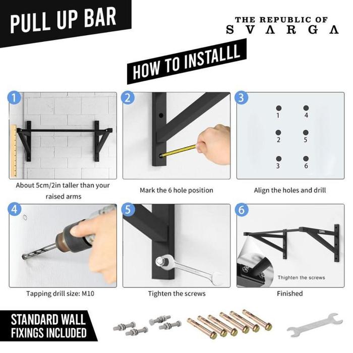 Svarga Wall Mounted Pull Up Bar - Chin Up - Muscle Up – Fitness&Gym - Pull Up Bar - Black, Standar