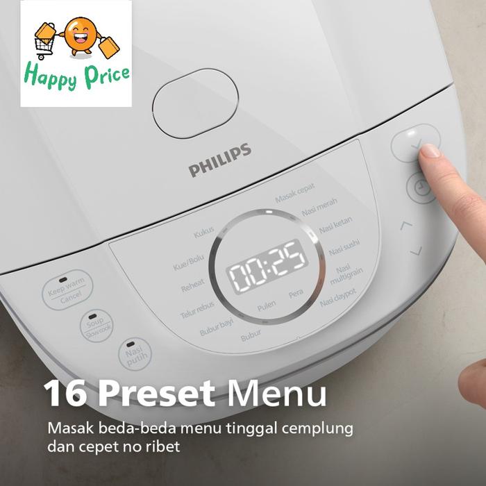 Philips Rice Cooker 1.8 L - 3000 Digital Series HD4716/30 - Putih - Anti lengket - FreshDefense