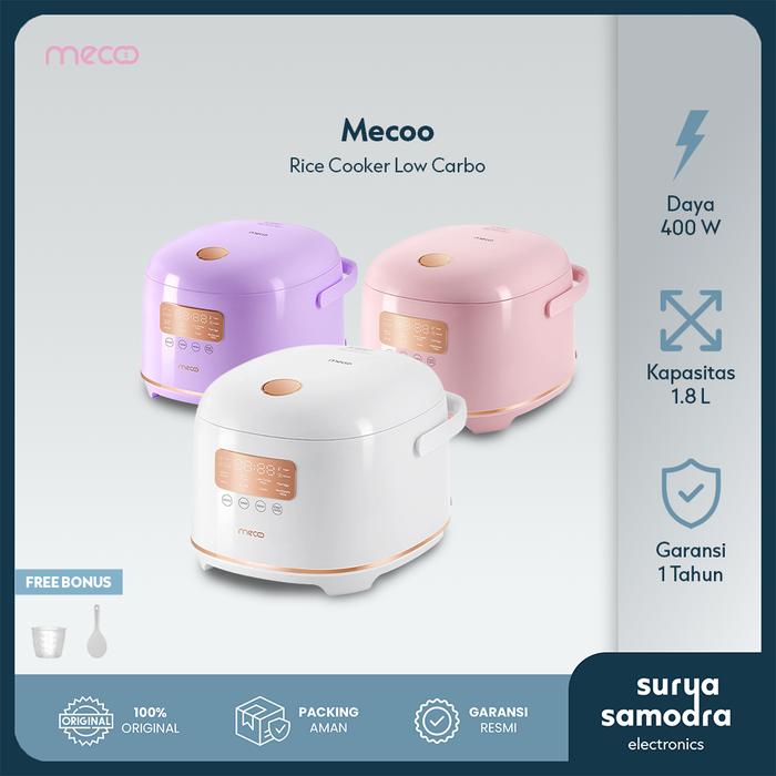 Mecoo Aesthetic Rice Cooker Putih Low Carbo Low Sugar Ceramic Coated Teflon Free 400 Low Watt 1.5L