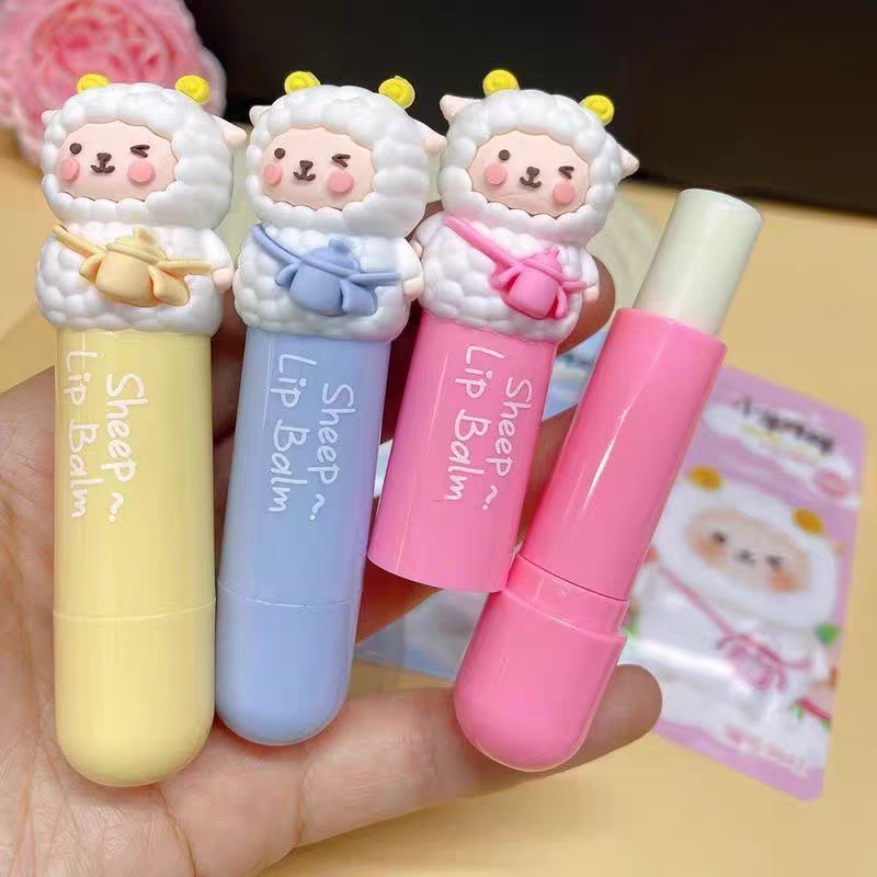 Lip balm Little Sheep tanpa warna melembapkan dan menghidrasi, mengurangi garis-garis di bibir