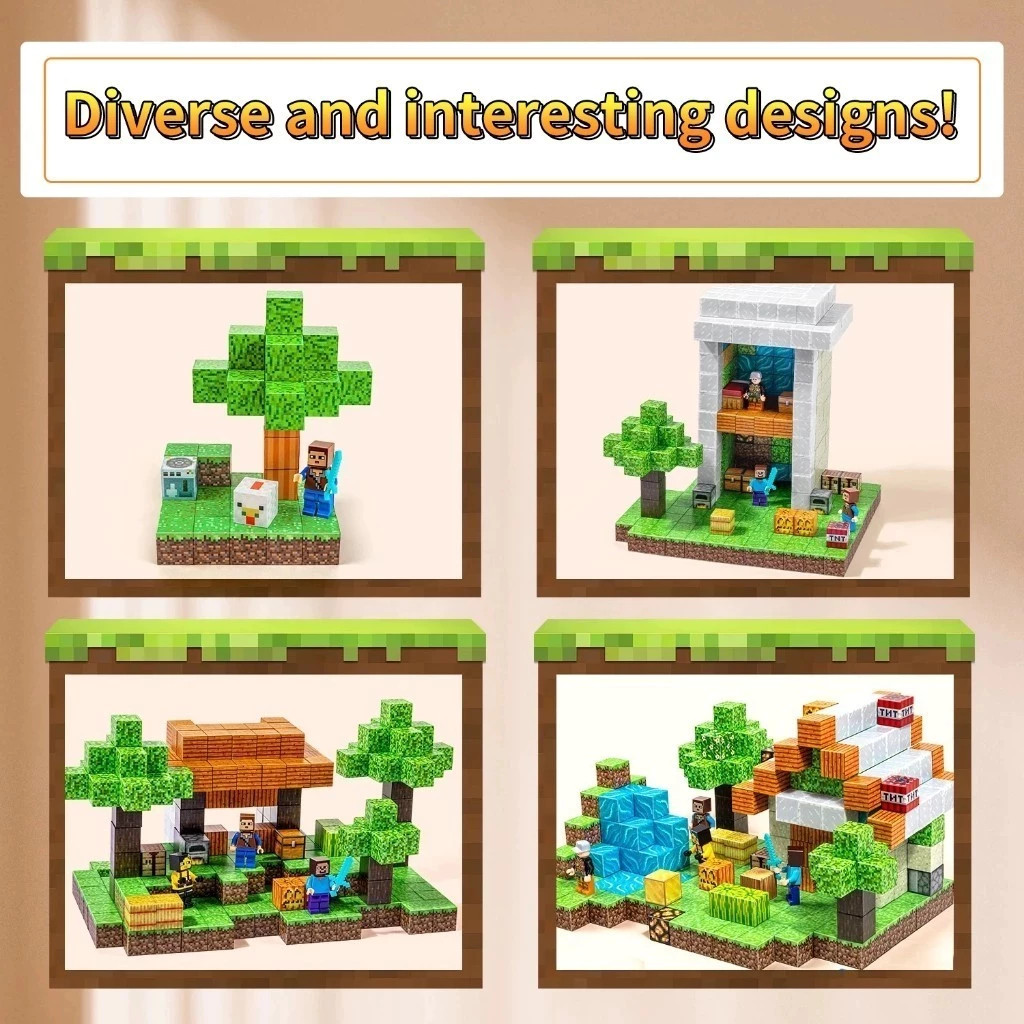Magnetic Cube DIY 3D Puzzle Balok Blok Magnet Minicraft karakter Susun Bangunan Block Brick Toys
