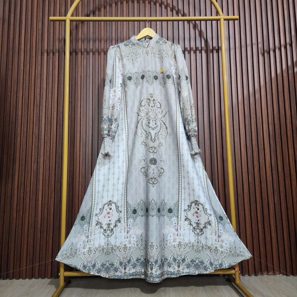 Gamis Cantik Motif Terbaru Bahan Sabrina Marina & Silk Print Lembut Adem Jatuh Dress Muslim Model Mewah Dan Elegan Cocok