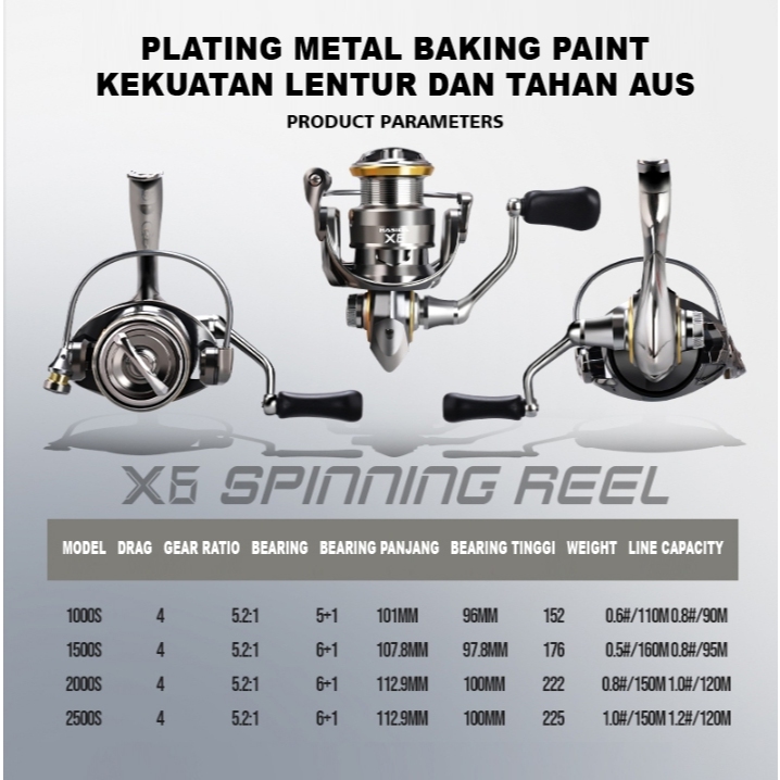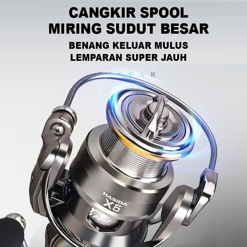 FREE LINE HASIDA X6 Reel Pancing Reel Spinning Saltwater Gulungan Pancing, 6+1 BB Ball Bearing, Gear Ratio: 5.2:1