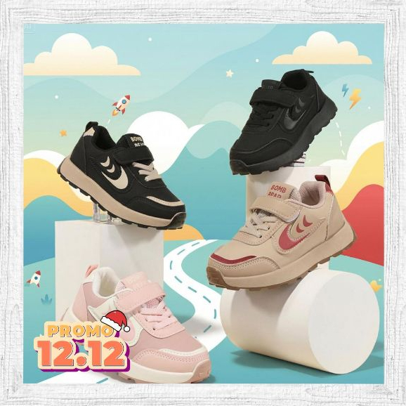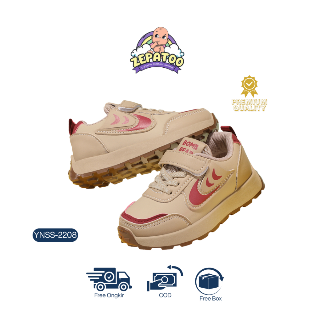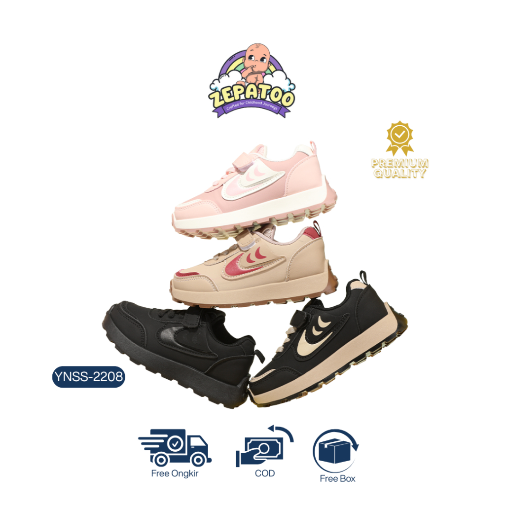 ZEPATOO YNSS2208 – Sepatu Sekolah Anak Sneakers Velcro Hitam Premium Anti-Slip Ringan TK-SD Unisex