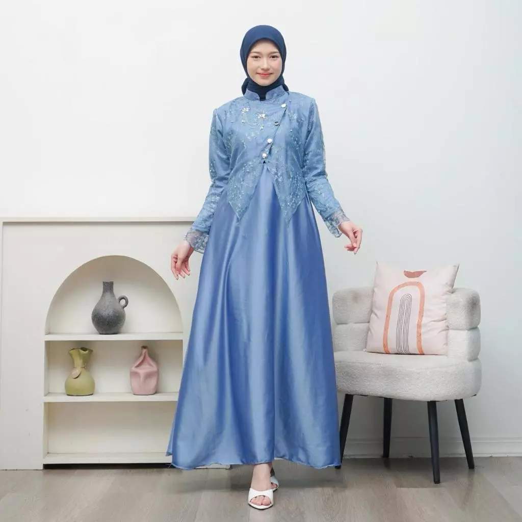 Dress Sahara Gamis Lebaran 2026 Dress Janggan Busui Friendly Gaun Pesta Brukat Premium Mewah Elegan