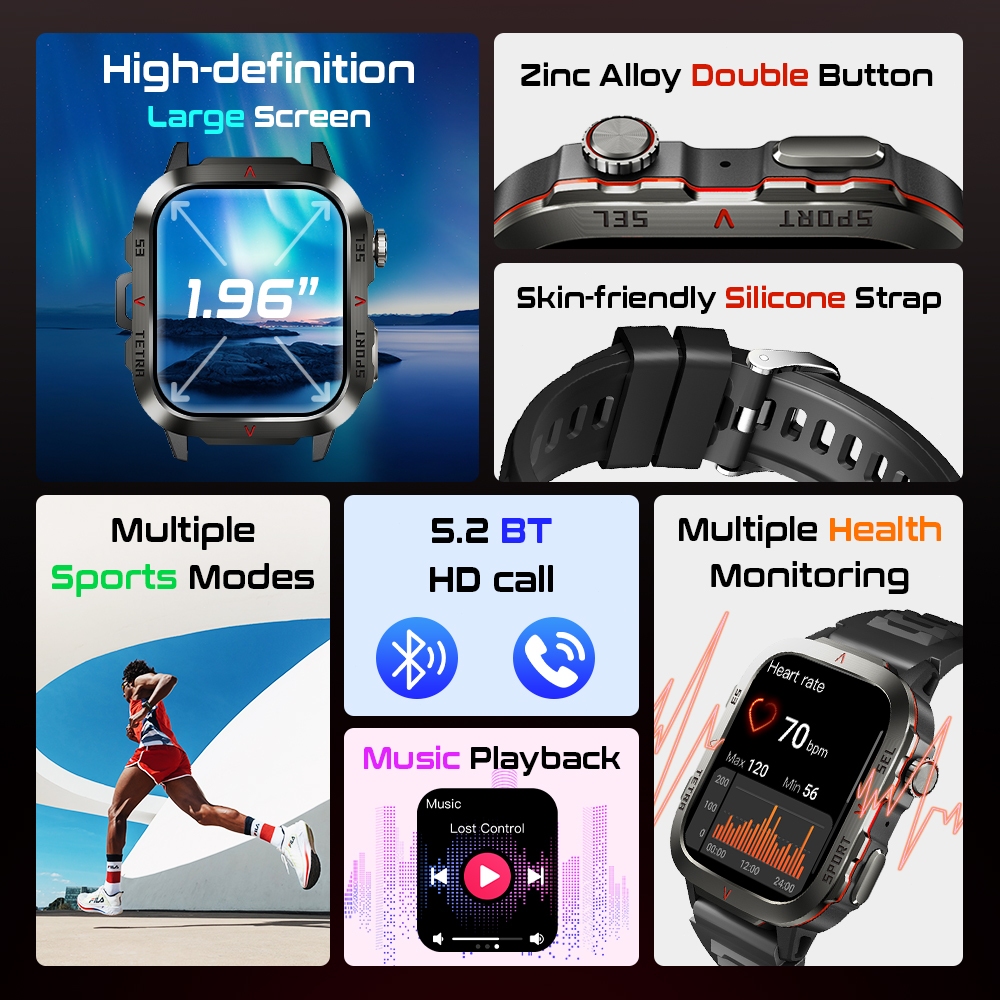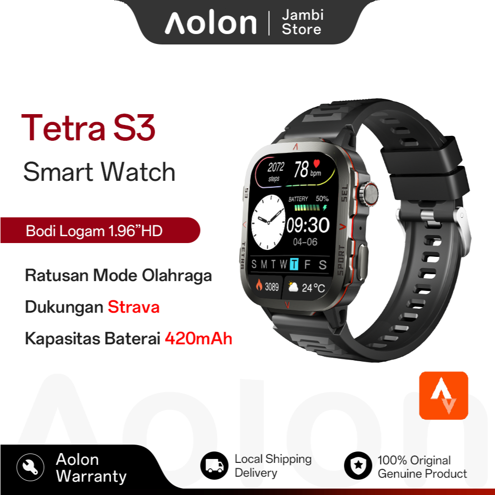 [Sale]Aolon Tetra S3 Smartwatch Original 100 PERSEN 1.96'' HD Display Bluetooth Call All-day Health Monitoring Waterproof 100+