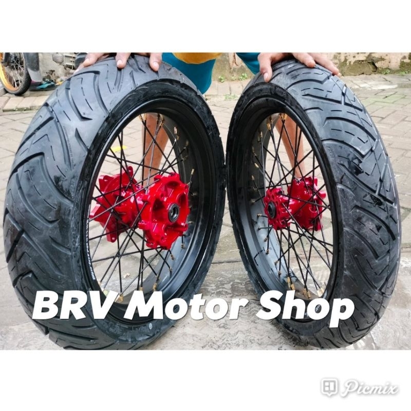 Velg SuperMoto Crf150L Ukuran 300-350+17 Ban 110 Dan 130 Tromol Original Ban Tubles ban 100-80-17 dan 120-70-17
