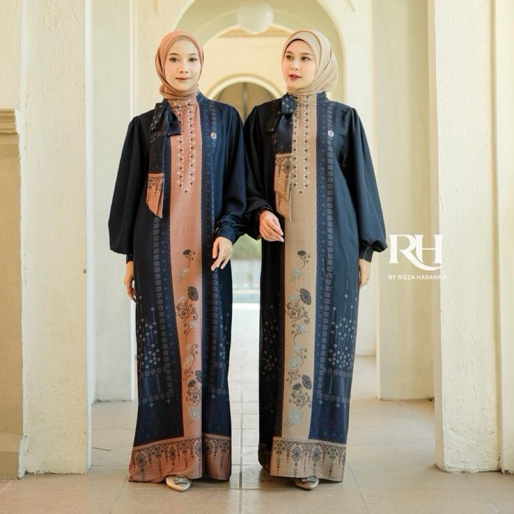 Rh Col Khalisa Dress Raya Series 2026 Bahan Silk Motif Gamis Wanita Muslim Elegan Simple