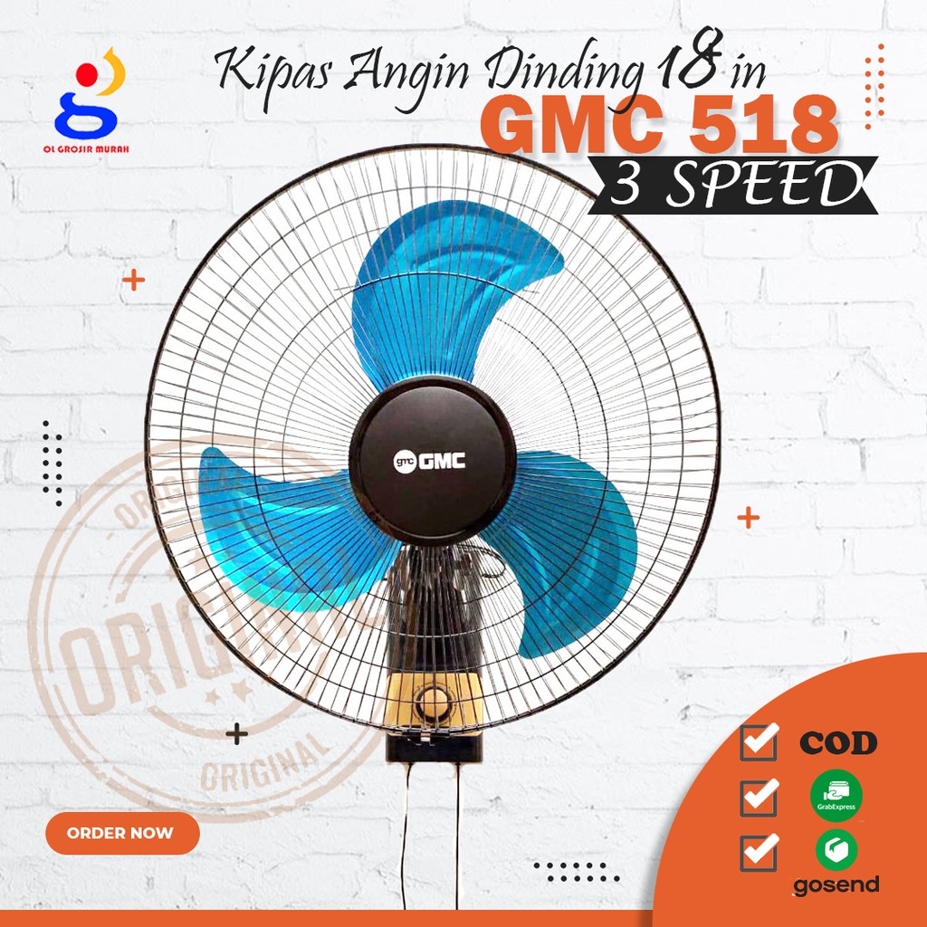 Kipas Angin Dinding Besi Gmc 518 Wall Fan 18 Inch Tembok Metal Sni Garansi Resmi Swing 3 Kecepatan