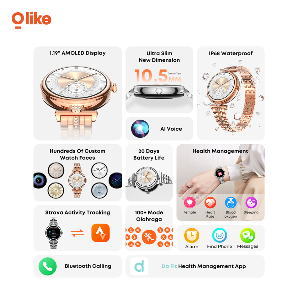 OLIKE Smartwatch Jam Tangan FL01 Ultra Wanita 1.19" Amoled Screen Sync Strava Battery 20 Day IP68 Sport Health Monitor