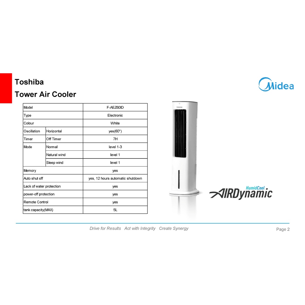 Toshiba Tower Air Cooler 5L F-Aez60Id Humid Cool Airdynamic