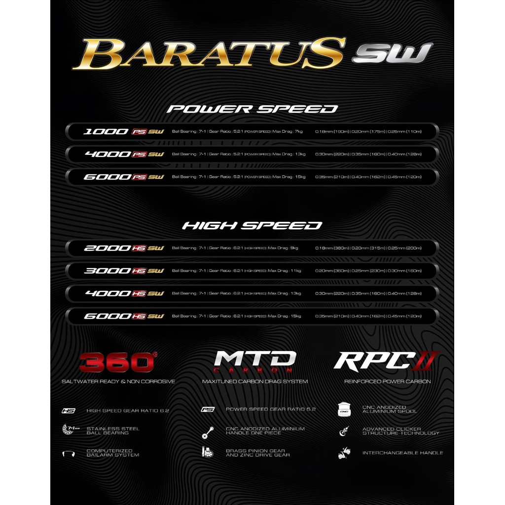 Reel Pancing DAIDO BARATUS W7.0 3000 HS/PS SW 7+1Bearing SaltWater Murah