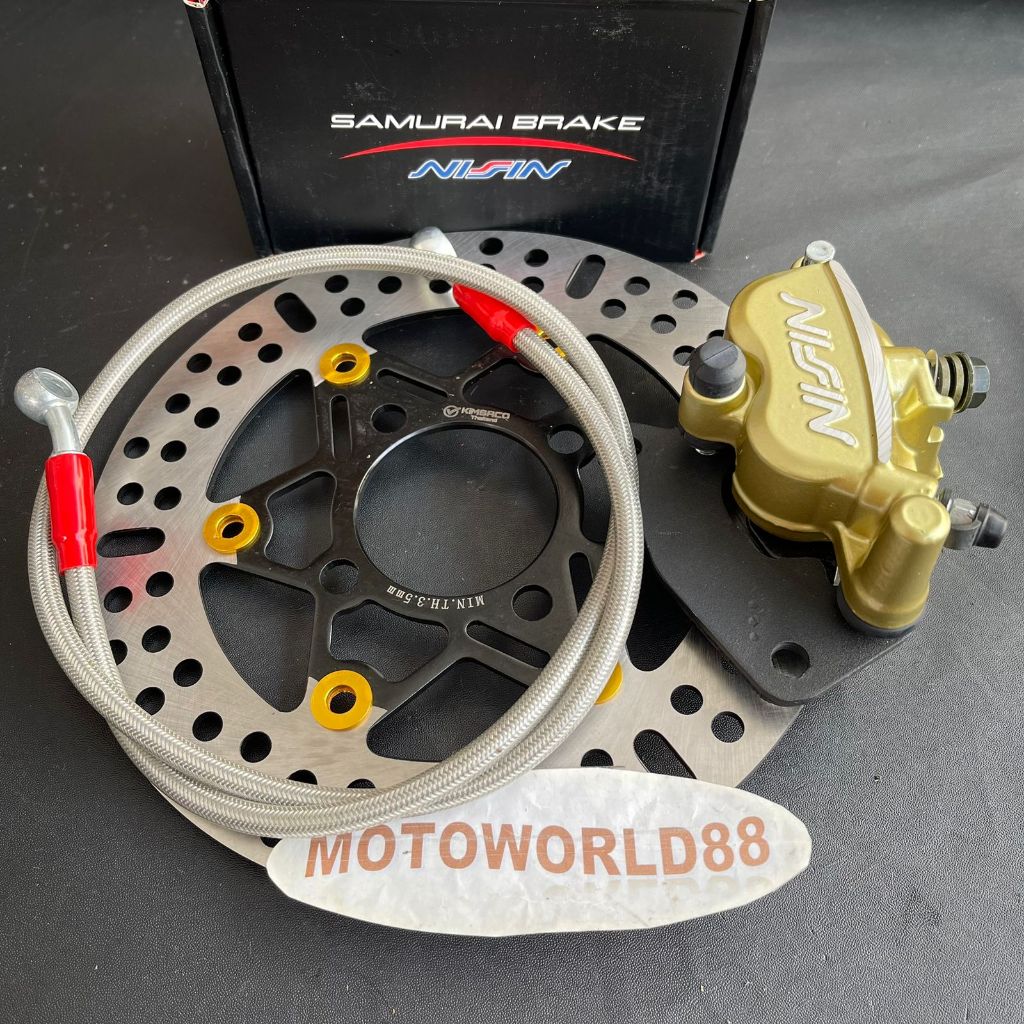 PIRINGAN DISC CAKRAM DEPAN 220MM + KALIPER SAMURAI 2PISTON NIZZIN + SELANG REM 95CM CARBON + BREKET MIO SPORTY / VARIO B