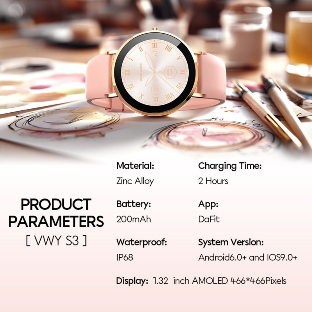 VIVAN VWY S3 SmartWatch Fashion Untuk Wanita Elegan AMOLED 1.32” IP68 Health Monitor Fitur Kesehatan Lengkap Smart Watch