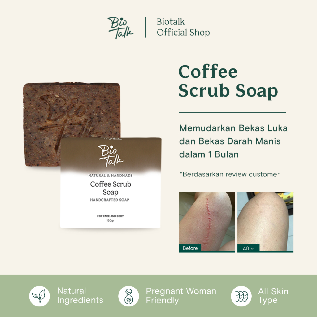 Biotalk Coffee Scrub Soap | 120 gram | No SLS/SLES | Sabun Mandi Kopi Natural Handmade untuk Bekas Luka Strechmark