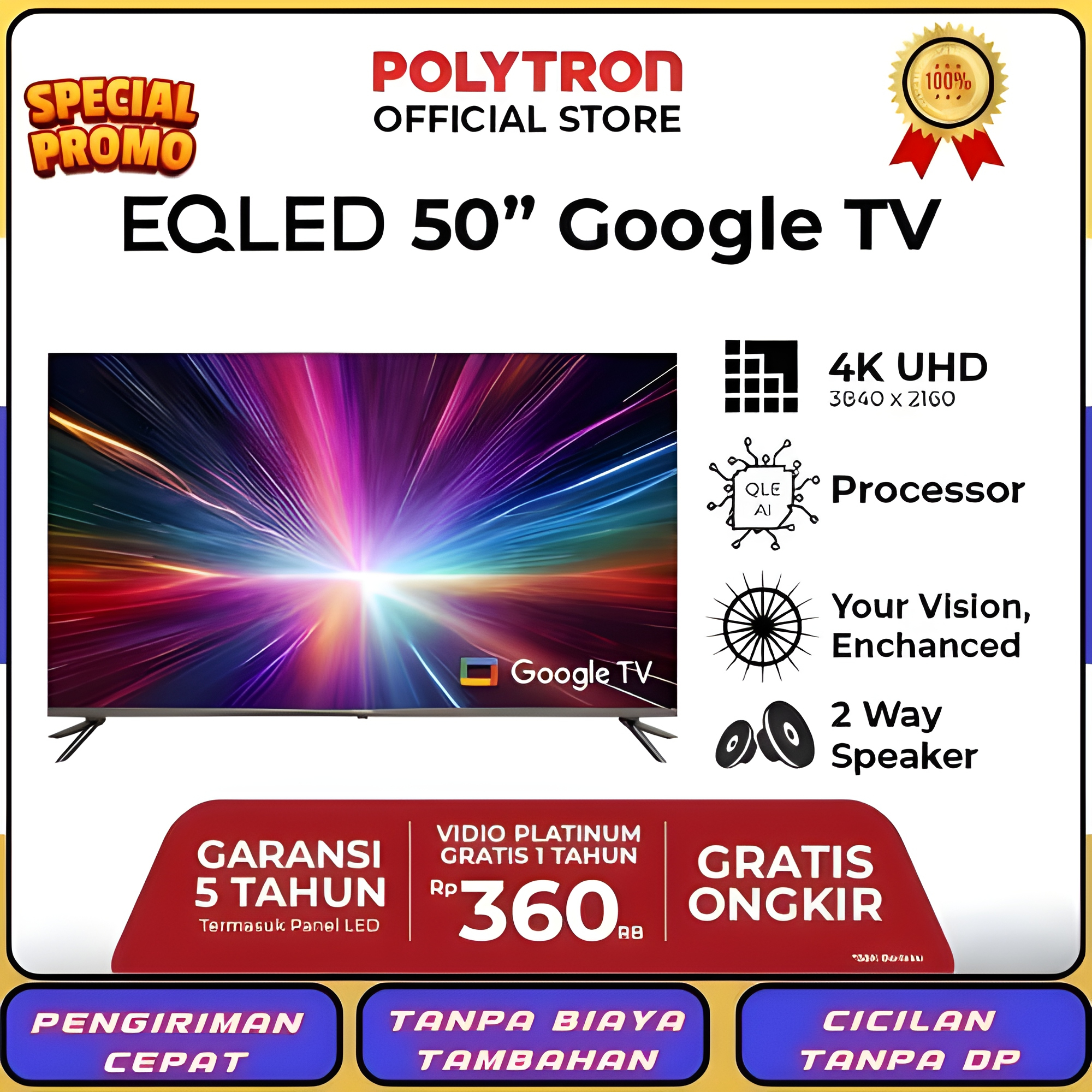 POLYTRON TV SMART CINEMAX GOOGLE TV SPEAKER TOWER 43 32 55 INCH PLD 50QG9059 TV DIGITAL ANDROID GARANSI RESMI MURAH