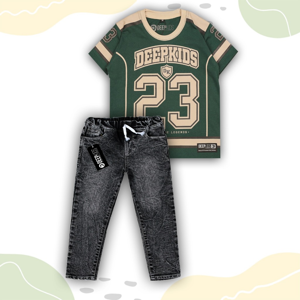 Setelan Anak Laki Laki Kaos Jersey Bahan Cotton Combed dan Celana Jeans Panjang Premium Usia 1 2 3 4 5 6 7 8 9 10 11 12 Tahun | Set KJR Jeans Panjang