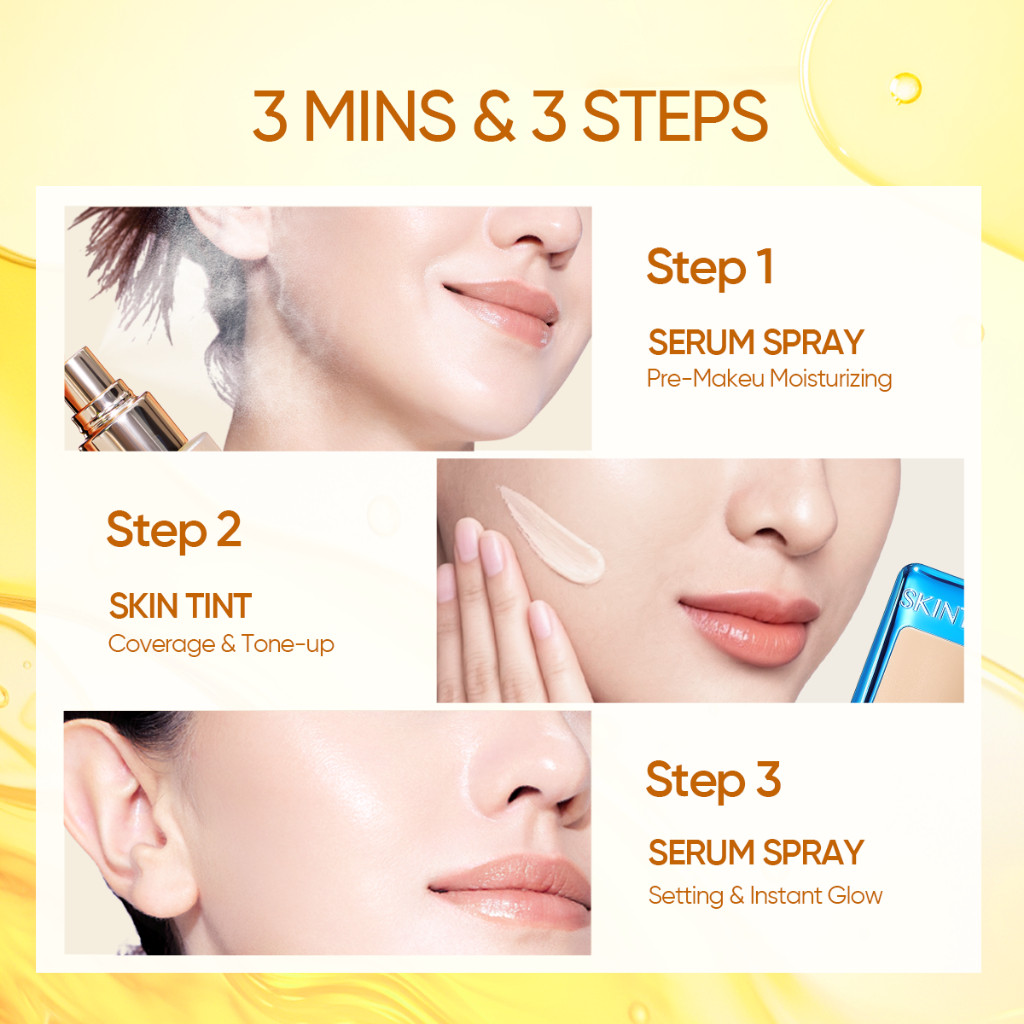 SKINTIFIC - 3Mins Glowing Make-up Set | 2PCS Glow Serum Spray Radiance Booster & Blurring Skin Tint Perfect Coverage Fl