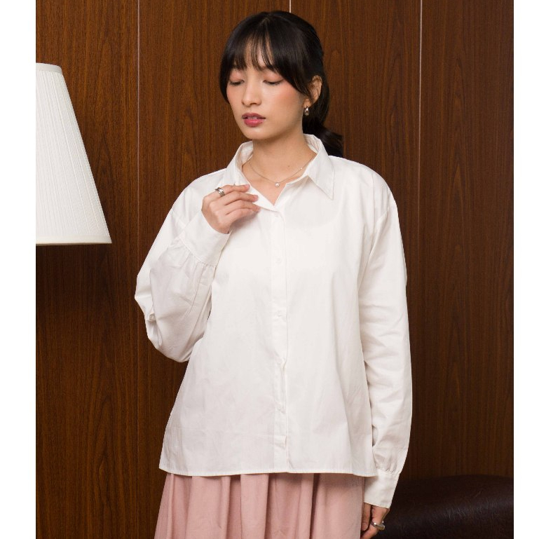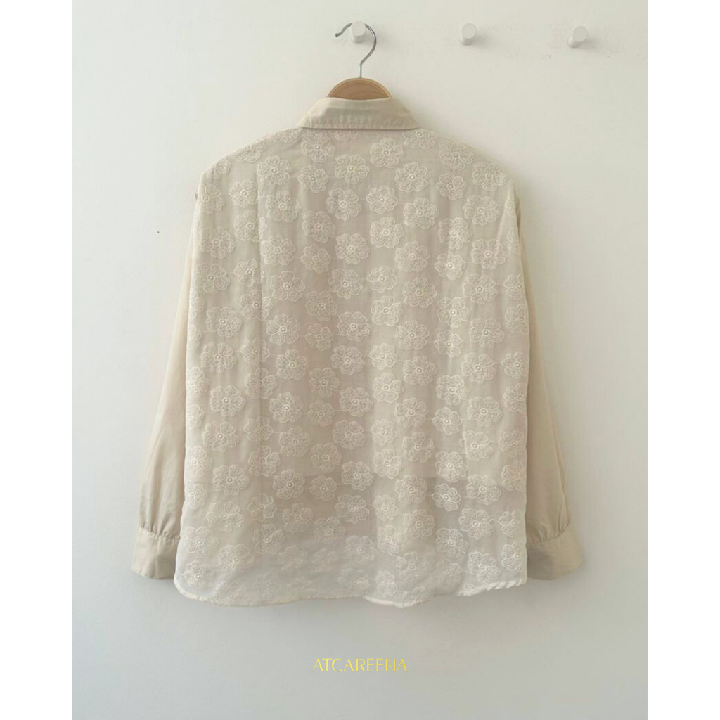 Clara Kemeja Wanita Premium - Simple Modern Look Atcareena - Lace Poplin Shirt With Lace Detail - Kemeja Wanita - Kemeja