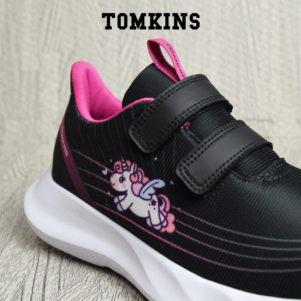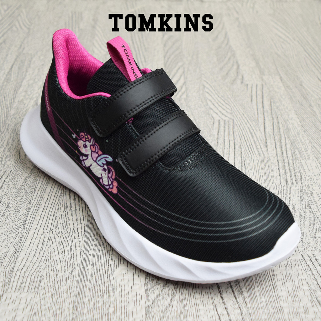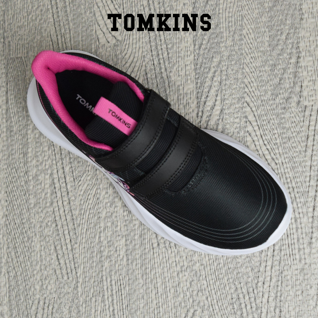 Tomkins Stitch - Hitam Merah Muda Sepatu Sekolah Perekat Anak Remaja